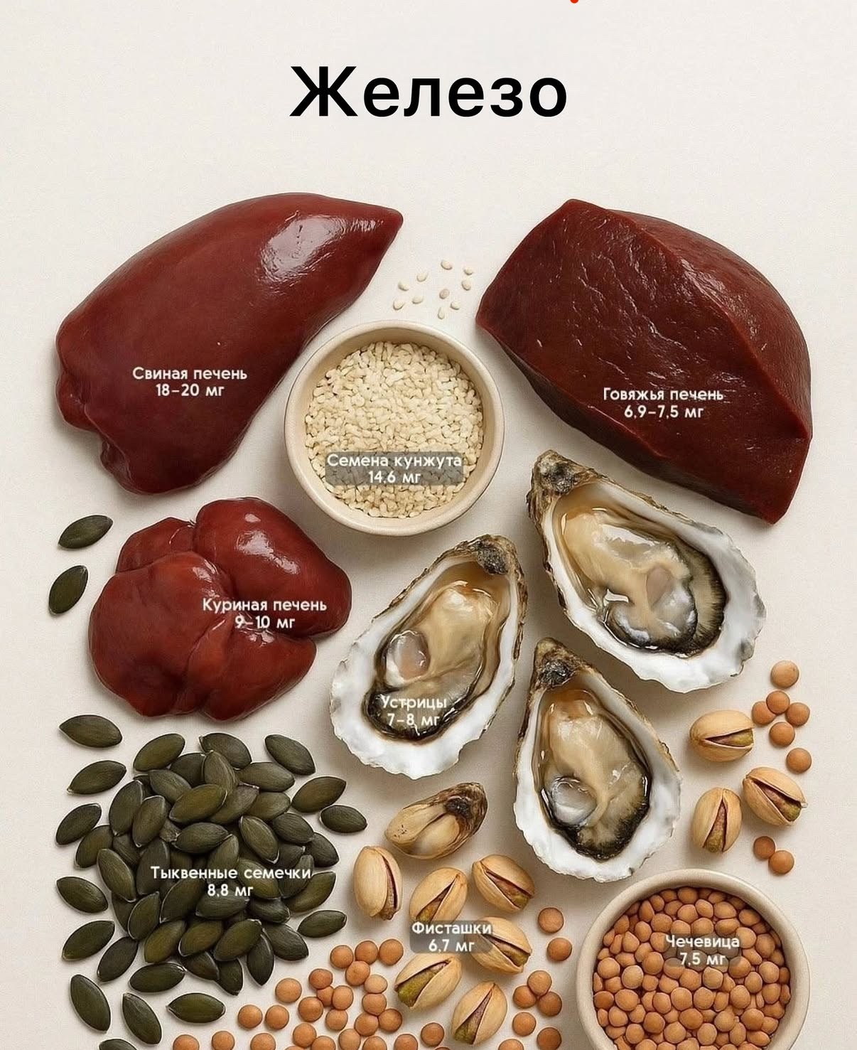 - Железо (ферритин, гемоглобин) – недостаток железа приводит к низкой энергии, слабости, бледности, плохой концентрации.
