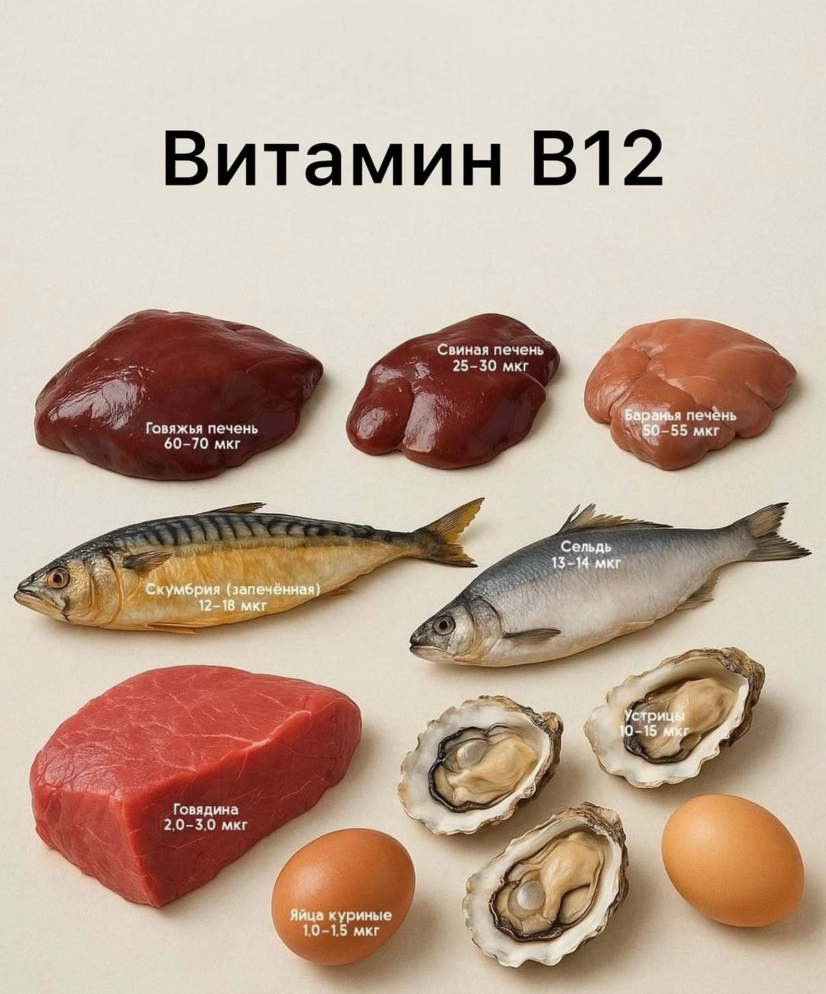 - Витамин B12 – его недостаток вызывает слабость, усталость, ухудшение памяти и раздражительность.